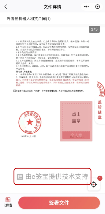 而在这一系列炫酷科技体验的背后,有一项“看不见的技术”同样关键——所有外骨骼机器人的租赁服务,均通过e签宝电子合同完成签约。从租赁协议到合作文件,数字化签约方式正默默支撑着这场传统与现代的精彩对话。
