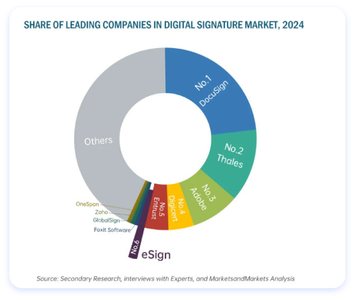 根据全球权威机构MarketsandMarkets发布的报告,e签宝以亚太第一、全球第六的成绩,成为中国唯一跻身全球前十的电子签名服务商。