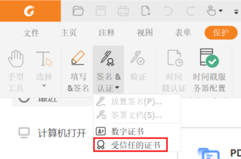 步骤一:打开“保护”-“签名&认证”-“受信任的证书”